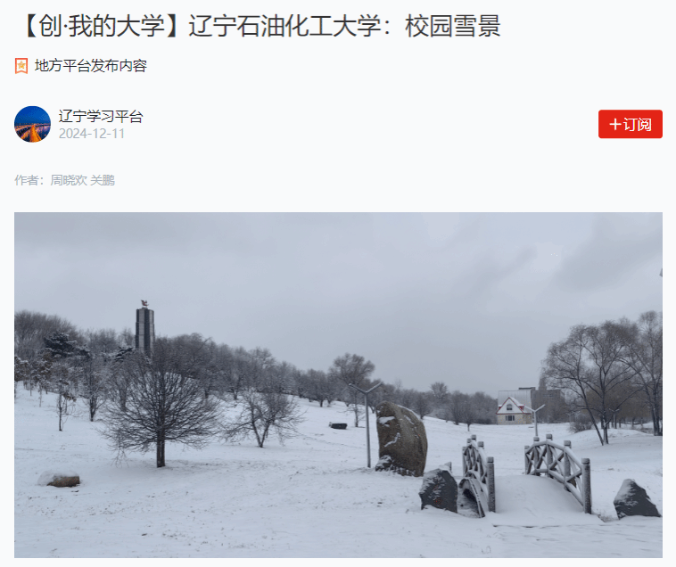 编者按:近日,学习强国辽宁学习平台对我校的冬日雪景以图集形式对此进行了宣传。现将报道转载如下:
