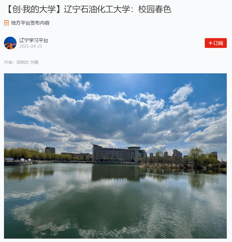 编者按:4月25日,学习强国辽宁学习平台对我校周晓欢、关鹏老师拍摄的校园春色美景以图集的形式做了宣传报道。现将相关报道转载如下: