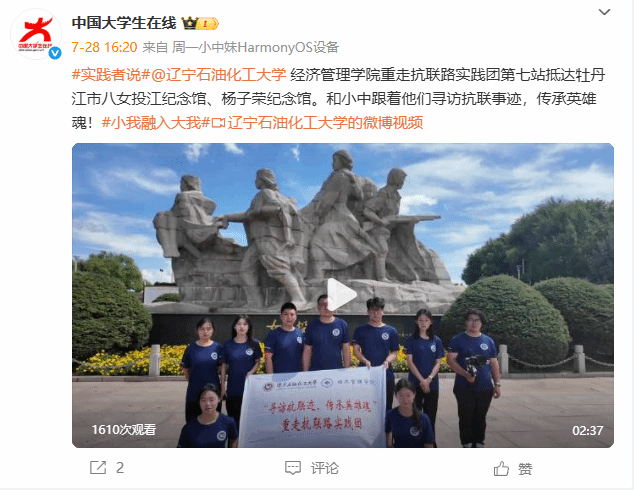 教育部中国大学生在线官方微博:经济管理学院重走抗联路实践团第七站抵达牡丹江市八女投江纪念馆、杨子荣纪念馆